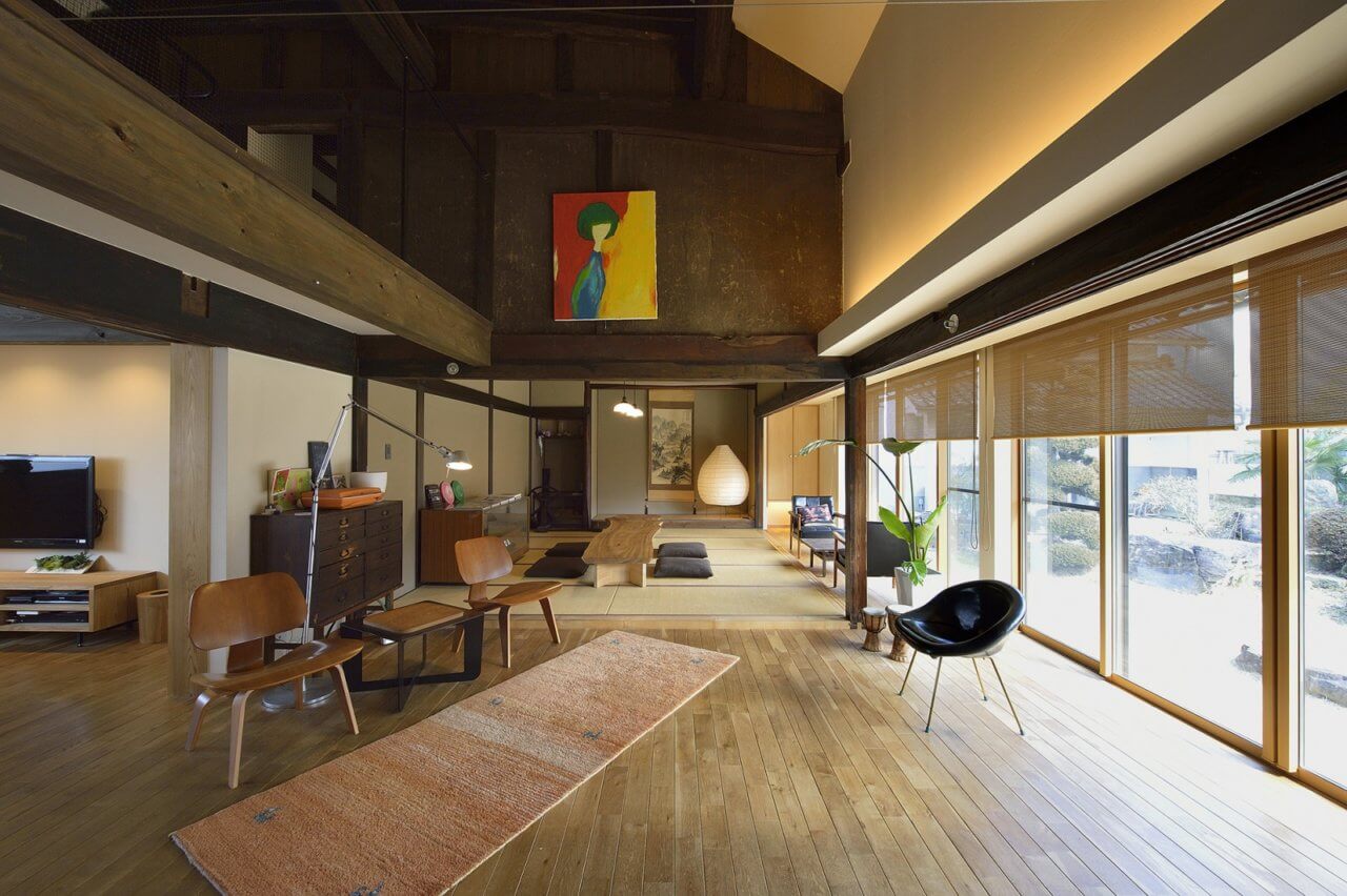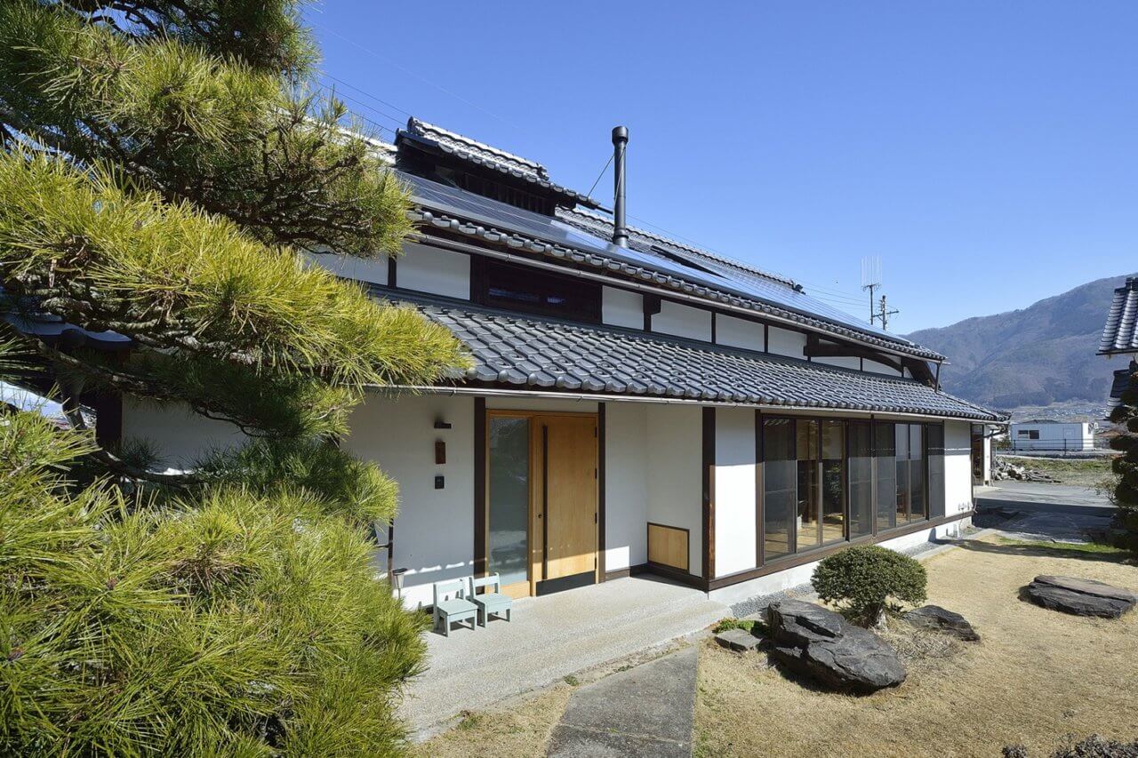 松代バイパスのすぐ脇に建つ、築130年の歴史的な建物をリノベーション。古民家はいいけれど、寒いのは嫌だという奥様の要望もあり、断熱・気密は新築並に確保。長野の冬の厳しいシーズンでも薪ストーブ1台が家中を暖めてくれます。もちろん、断熱のお陰で夏もエアコン一台で涼しく、快適。新しくても味の出るような素材を吟味し、古い材料との調和を考えました。家具は制作したり、デザインの古い家具を入れ調和を取りました。