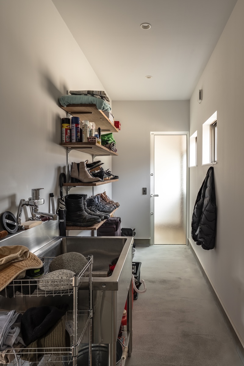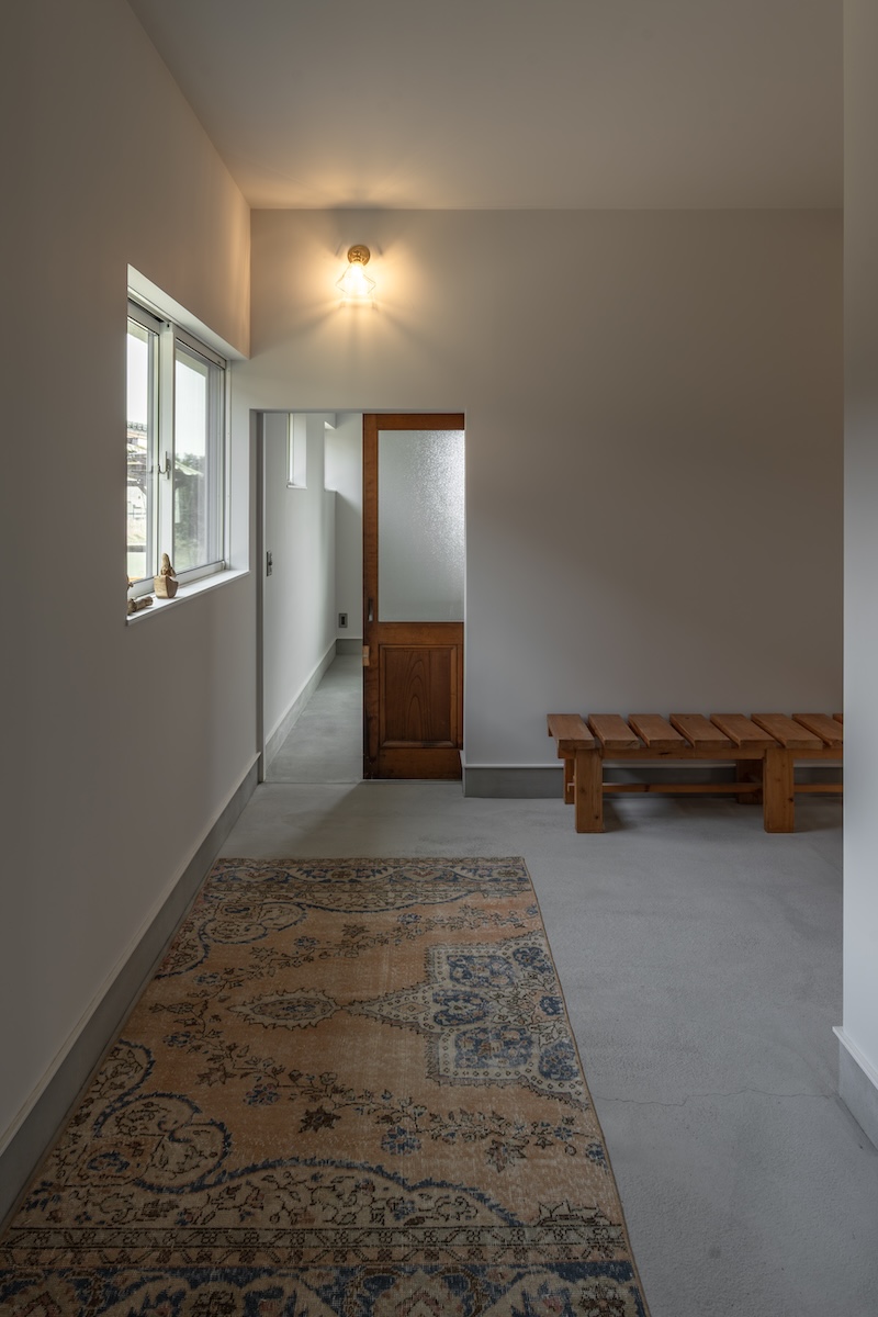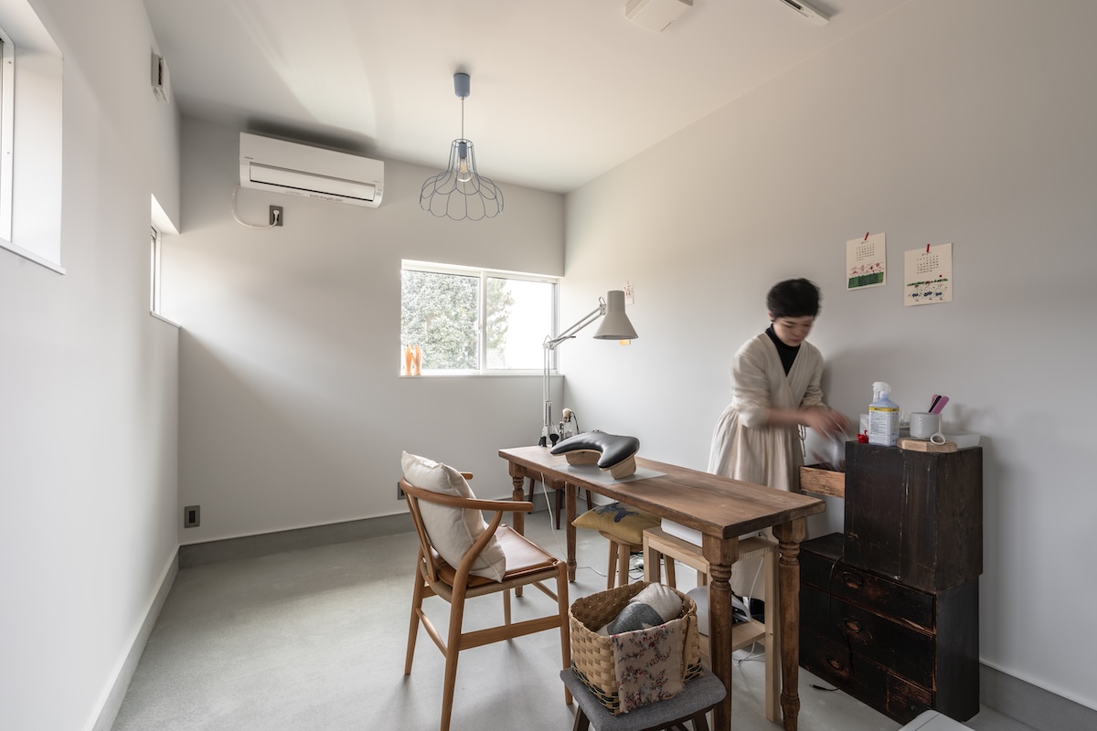 夫妻の住まいは、一つひとつの空間をゆったり設け、シームレスに繋がるつくり。玄関土間の先には奥さまが営むネイルサロンがあり、リビング脇にはご主人のアトリエも。夫妻の感性が宿る、気持ちのいい家に。