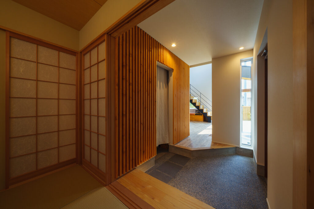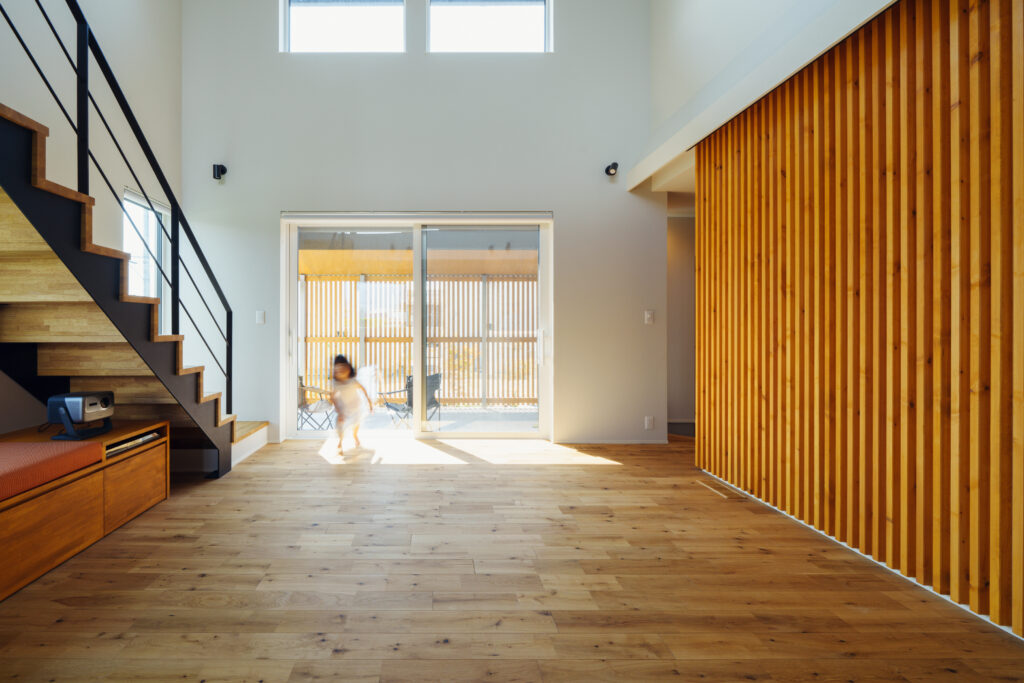 木造2階建て | 敷地面積:457.76㎡(138.47坪) | 延床面積:128.78㎡(38.95坪) | C値:0.20c㎡ / ㎡ | Ua値:0.20W /(㎡K) | 家族構成:夫婦 子供2人 | 耐震等級:3(3次元立体解析) | スペック:断熱等級7(G3)