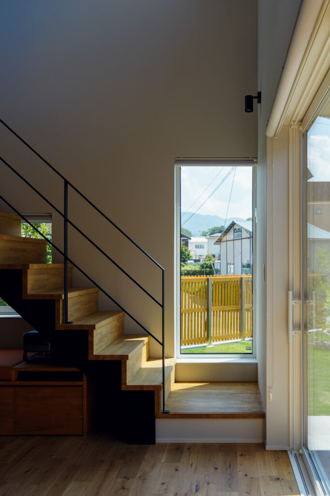 「せっかく長野に住むのなら、見晴らしの良い場所で暮らしたい」―― そんな思いから、浅間山を望める土地を選んだご夫婦。自宅でのデスクワークが多い日も、休日のコーヒータイムも、いつでも浅間山の姿を感じながら過ごしたいというご要望に建築士が提案したのが“室内展望台のある家”です。2階に設けた大開口のフリースペースは、まさに心をほどく家族の特等席。朝日に染まる山肌、季節ごとに移ろう色彩。日々の暮らしの中に、自然の美しさが静かに寄り添います。家のどこにいても心地よく、そして風景とつながるように。この住まいは、眺めと暮らしがひとつになった“長野らしい心地よさ”をカタチにしています。