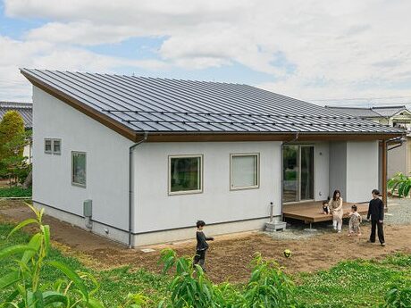 木造平屋 | 敷地面積:554.06㎡(167.60坪) | 延床面積:97.56㎡(29.51坪) | C値:0.29c㎡ / ㎡ | Ua値:0.34W /(㎡K) | 家族構成:夫婦 子供3人 | 耐震等級:3(3次元立体解析) | スペック:断熱等級6(G2)