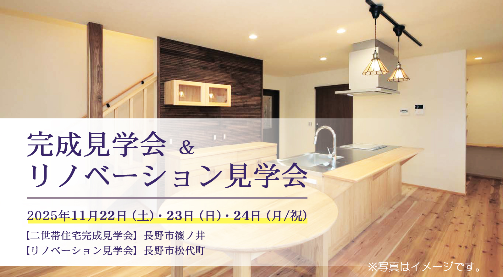 茅野市 見学会長野市篠ノ井岡田・長野市松代町│二世帯住宅完成見学会&リノベーション住宅完成見学会 〜 2会場同時開催 〜│11/22(土)、23(日)、24(月・祝) 開催日時:11/22(土)、23(日)、24(月・祝)10:00~17:00
