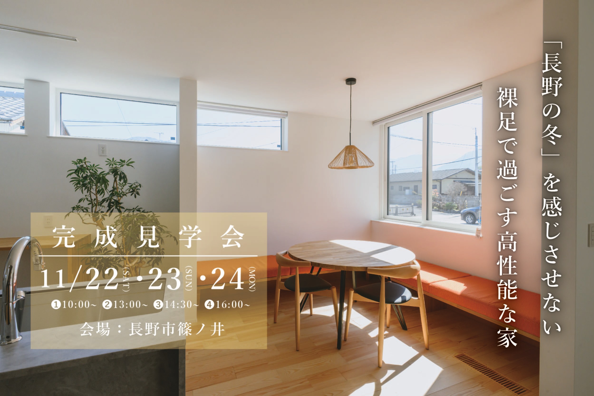長野市 見学会長野市篠ノ井│「長野の冬」を感じさせない、裸足で過ごす高性能な家 完成見学会│11/22(土)・23(日)・24(月・祝) 開催日時:11/22(土)・23(日)・24(月・祝)①10:00〜 ②13:00〜 ③14:30〜 ④16:00〜