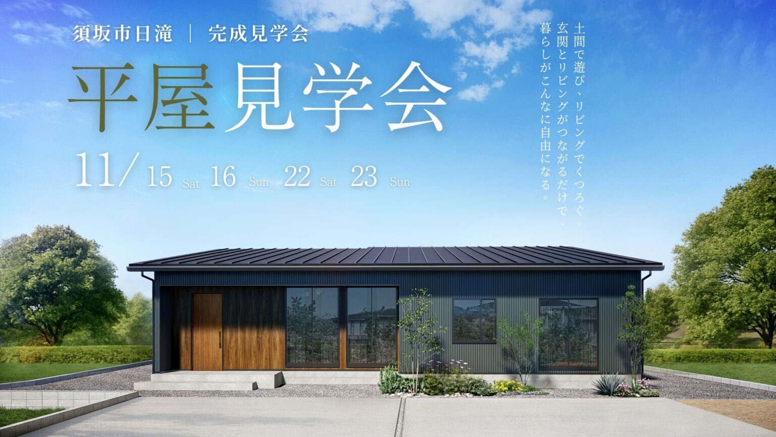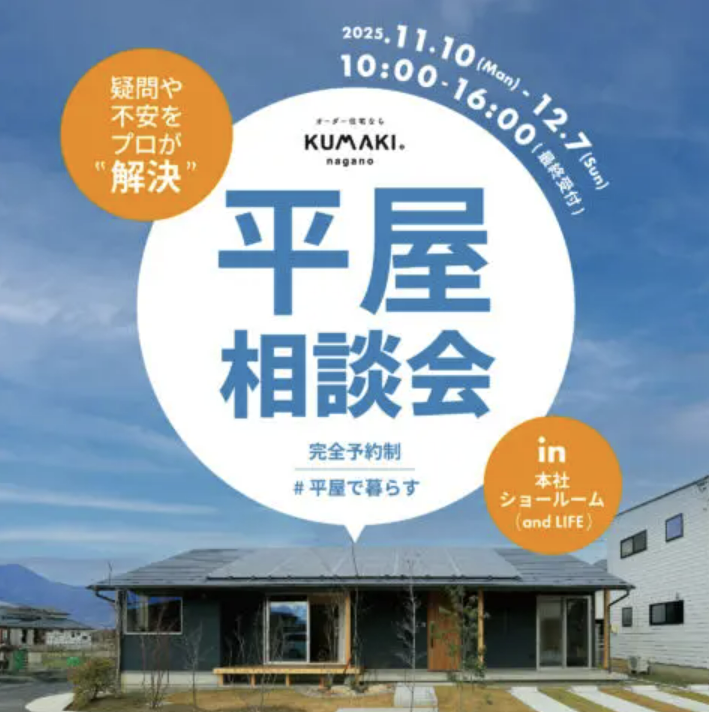 須坂市 見学会須坂市日滝│平屋住宅新築完成見学会│11月 15日(土)、16日(日)、22日(土)、23(日) 開催日時:11月 15日(土)、16日(日)、22日(土)、23(日)9:00~17:00
