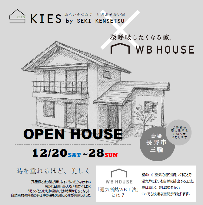 長野市 見学会長野市三輪│WB HOUSE 自然素材の質感と手仕事の温もりを感じる家完成見学会│12/20(土)~28(日) 開催日時:12/20(土)~28(日)①10:00~ ②13:00~ ③15:00~