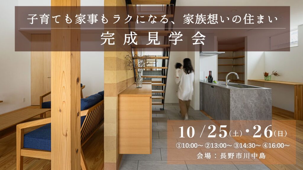 長野市川中島│「子育ても家事もラクになる、家族想いの住まい」完成見学会│10/25(土)・26(日)