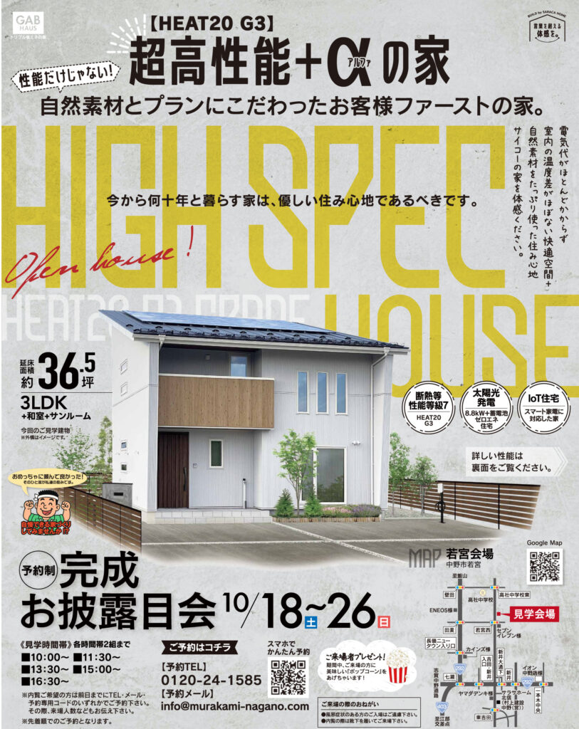 中野市若宮│超高性能【HEAT20 G3】+αの家 完成お披露目会│10/18(土)~26(日)