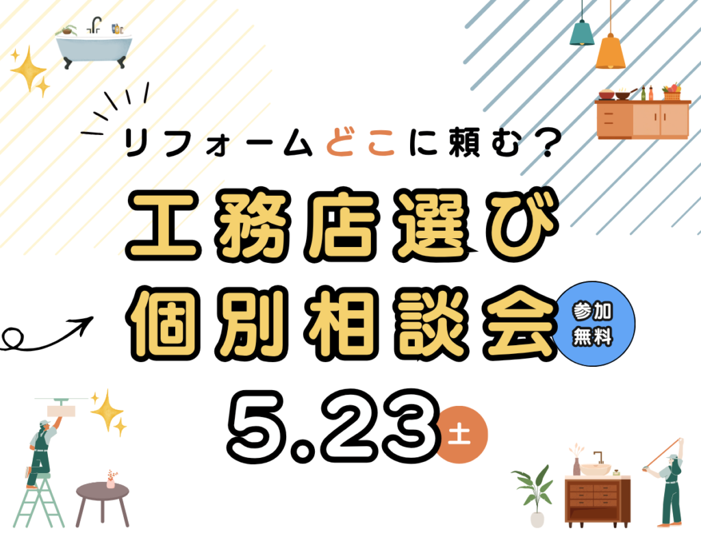 そんなリフォームの工務店選びで「なんとなくモヤモヤ」を抱えている方が、自分の軸で工務店を選べるようになる相談会です。